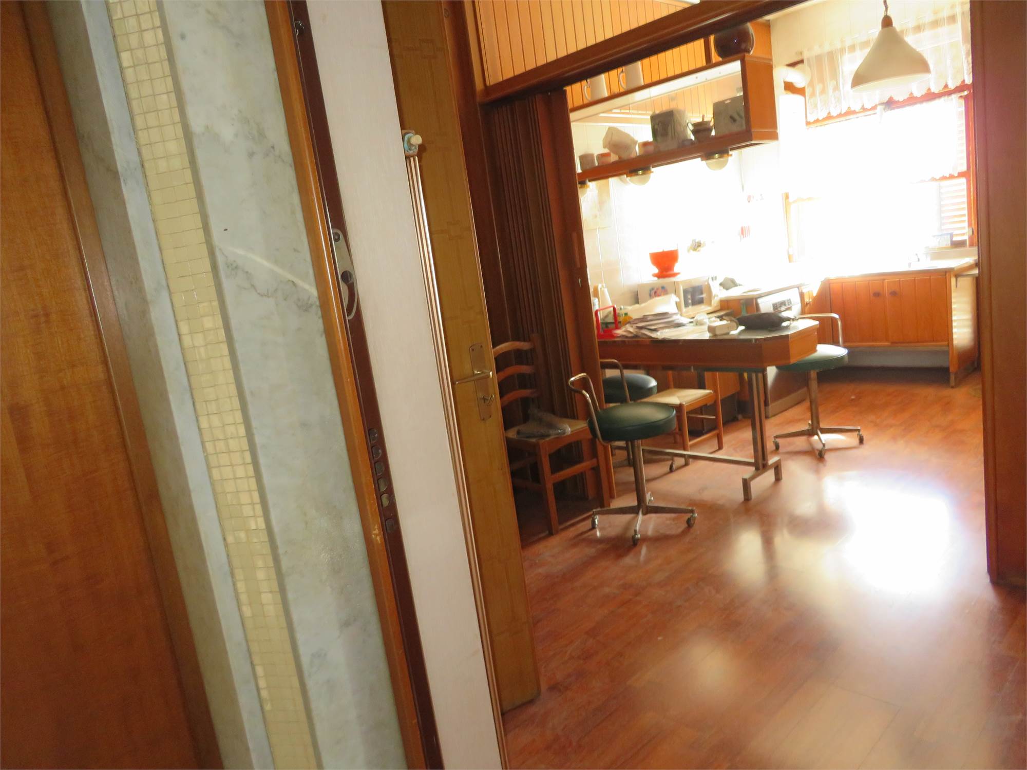 LA ZONA CENTRALE ADIBITA A CUCINA E TINELLO CON VANO RIPOSTIGLIO E BAGNO LAVANDERIA